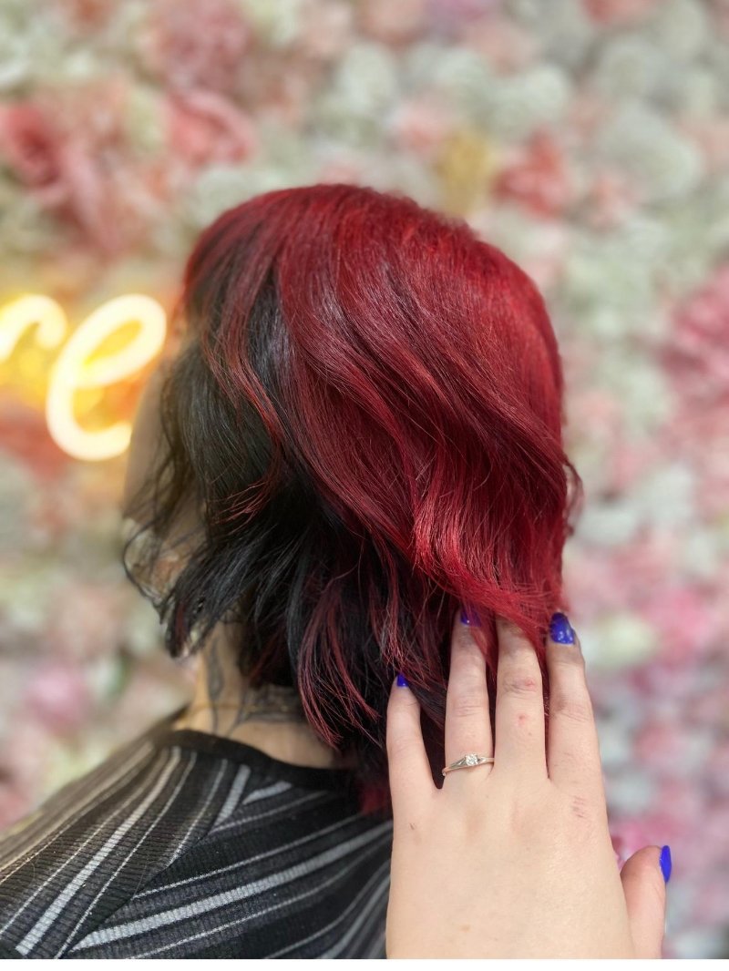 hey my name is Amy, I have been on and off hairdressing for about 15 years, also been a carer in that time aswell. My favourite part of hairdressing is cutting/restyling hair. I love meeting new people and making them smile and feel good 😀 i absolutely love my job, also qualified in body piercing to which im really love doing to.